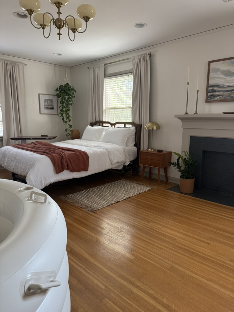 At Midtown Birth Center, that comfort begins the moment you walk through the door. Nestled in a lovingly restored 1930s home, the space carries the charm of a bygone era—original hardwood floors, tall windows, and eclectic vintage touches that make each of our two birth suites feel both timeless and personal. Instead of the sterile white walls of a hospital, you’ll find warm colors, carefully chosen antiques, and the sense of stepping into a place that has always welcomed families.